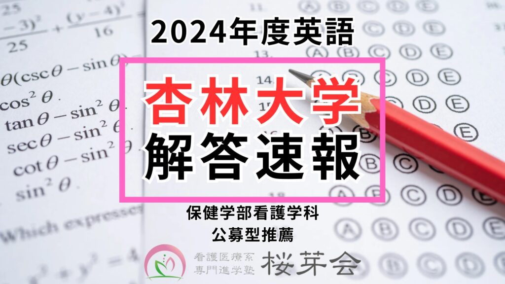 今回は、杏林大学保健学部 2025年度 公募型推薦 英語の解答解説を載せます。
