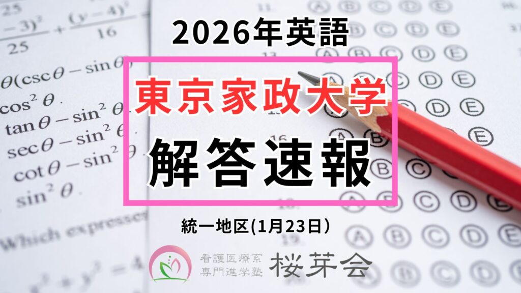 ※2026年入試のその他大学や科目の解答速報まとめは「【2026年看護医療系学部】 解答速報まとめ|看護医療系専門進学塾 桜芽会」をご参照ください。