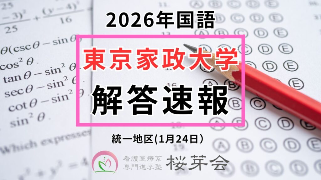 ※2026年入試のその他大学や科目の解答速報まとめは「【2026年看護医療系学部】 解答速報まとめ|看護医療系専門進学塾 桜芽会」をご参照ください。