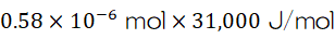 - ATP 1 mol あたりのエネルギー:31 kJ = 31,000 J