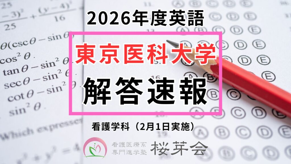 ※2026年入試のその他大学や科目の解答速報まとめは「【2026年看護医療系学部】 解答速報まとめ|看護医療系専門進学塾 桜芽会」をご参照ください。