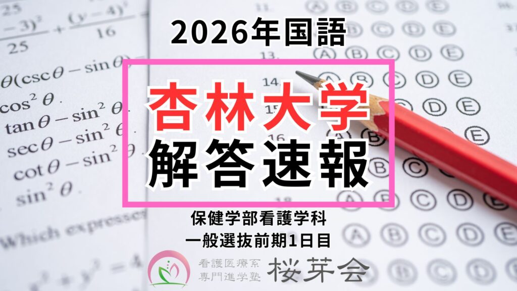 ※2026年入試のその他大学や科目の解答速報まとめは「【2026年看護医療系学部】 解答速報まとめ|看護医療系専門進学塾 桜芽会」をご参照ください。