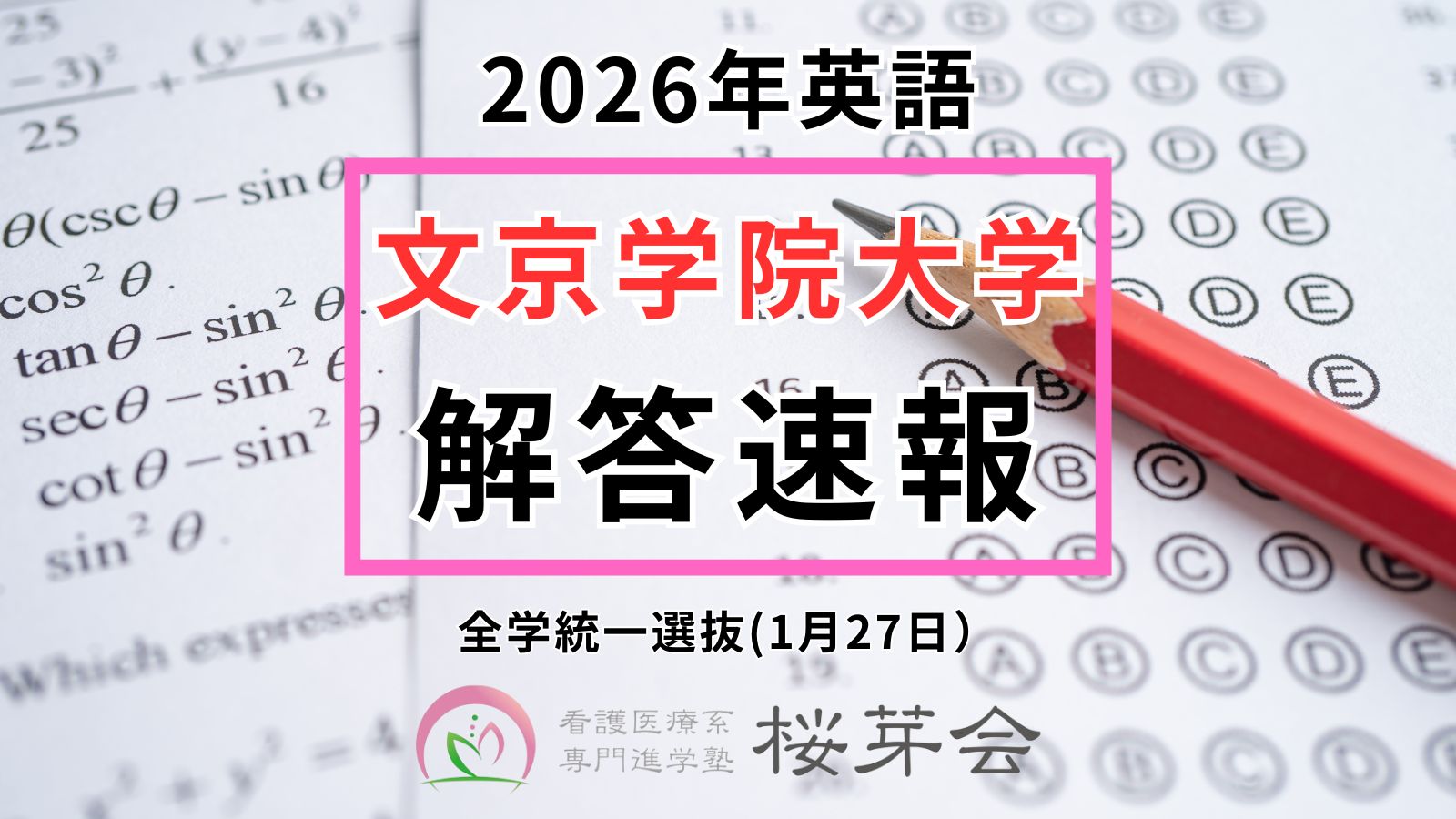 【2026年解答速報】文京学院大学 保健医療技術学部 全学統一選抜(英語)
