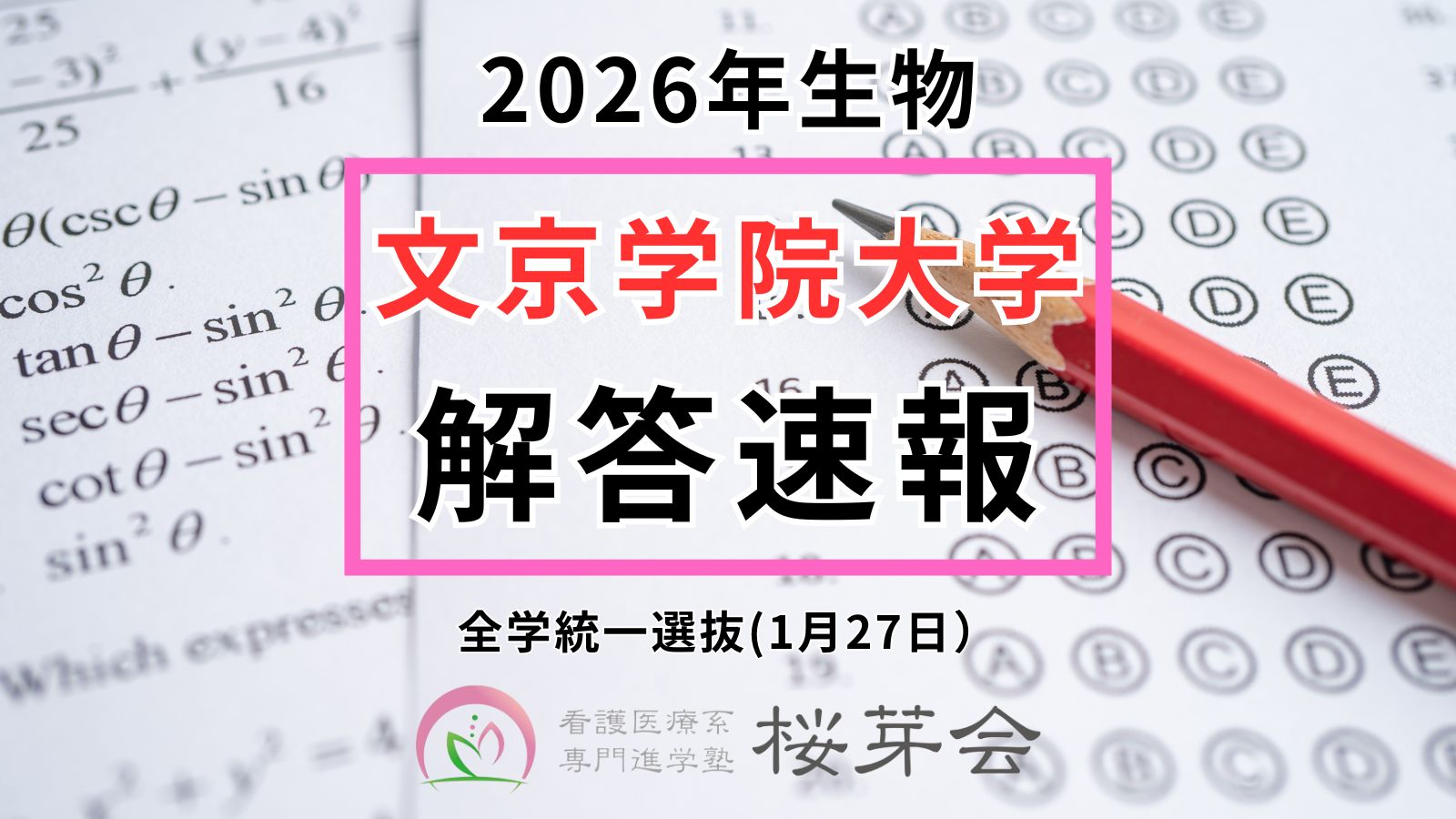 【2026年解答速報】文京学院大学 保健医療技術学部 全学統一選抜(生物)