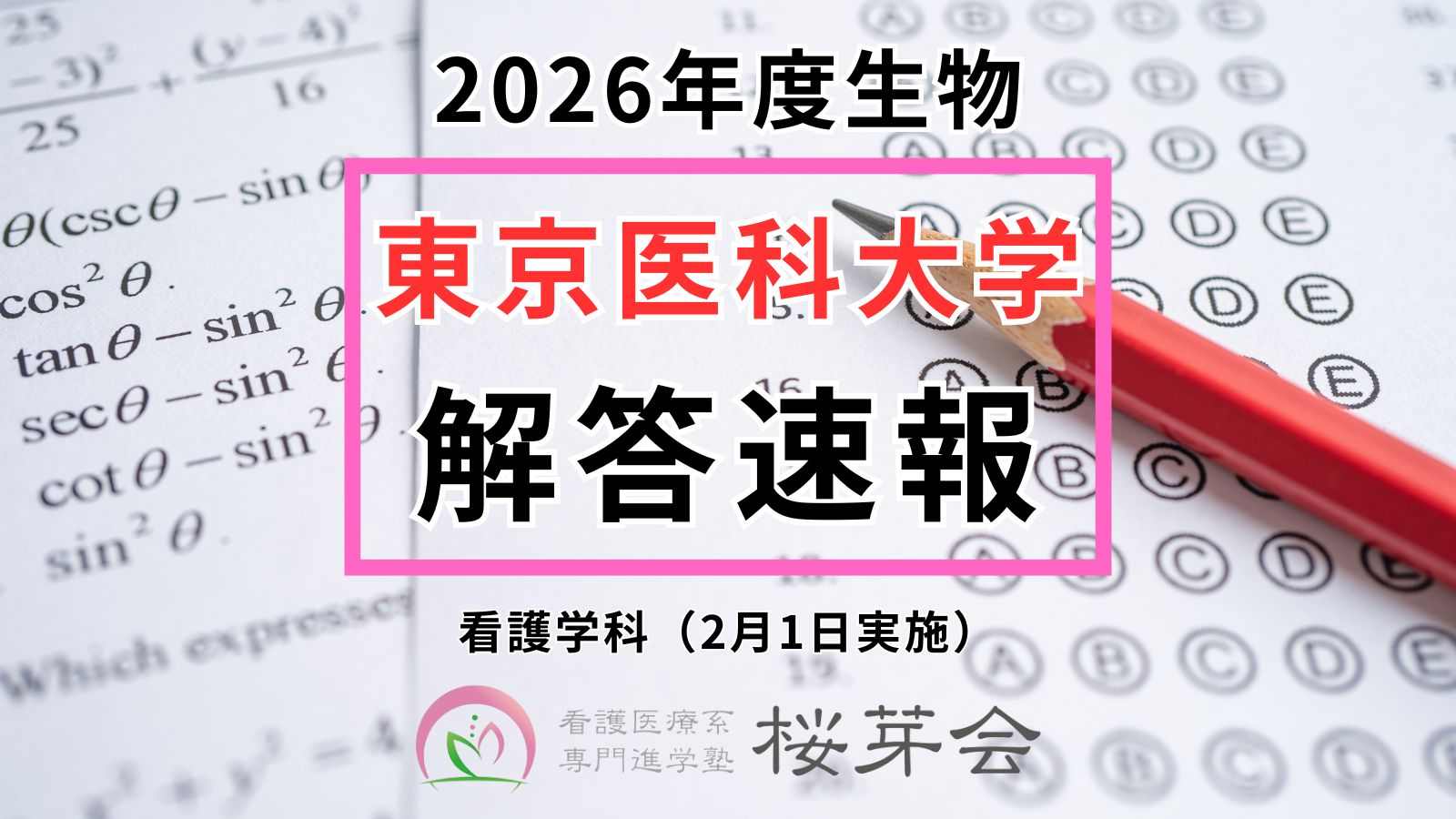 【2026年解答速報】東京医科大学 看護学科 一般選抜A方式(生物)