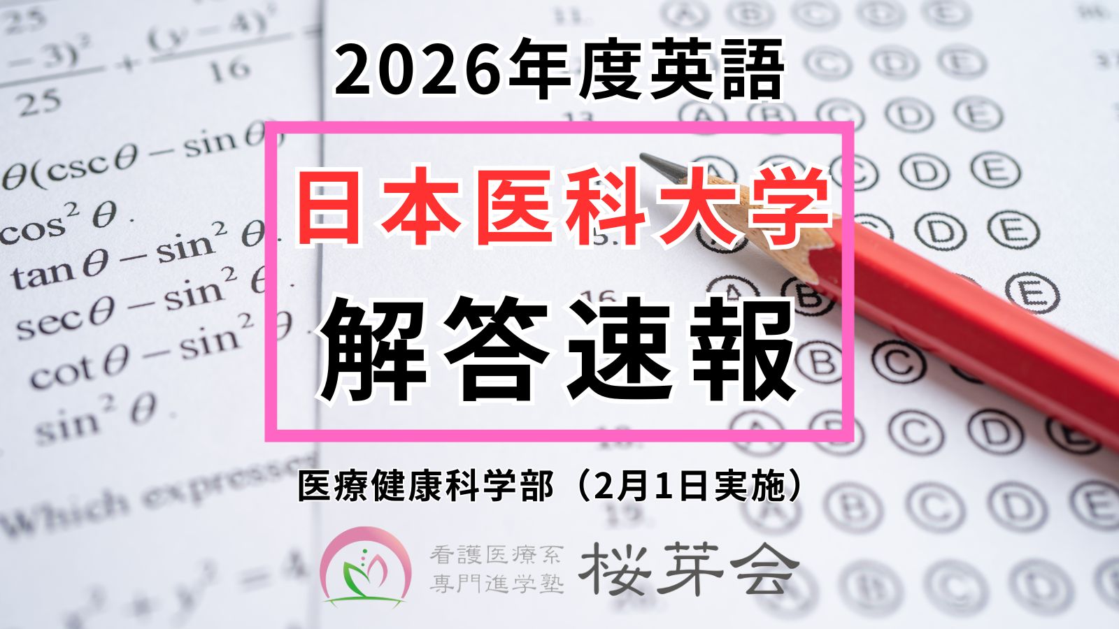 【2026年解答速報】日本医科大学 医療健康科学部 一般選抜 2月1日(英語)