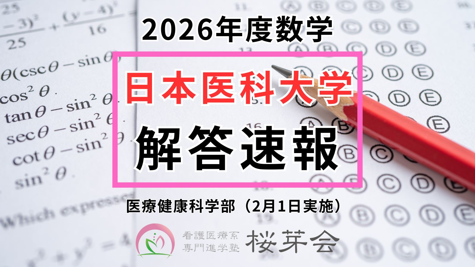 【2026年解答速報】日本医科大学 医療健康科学部 一般選抜 2月1日(数学)